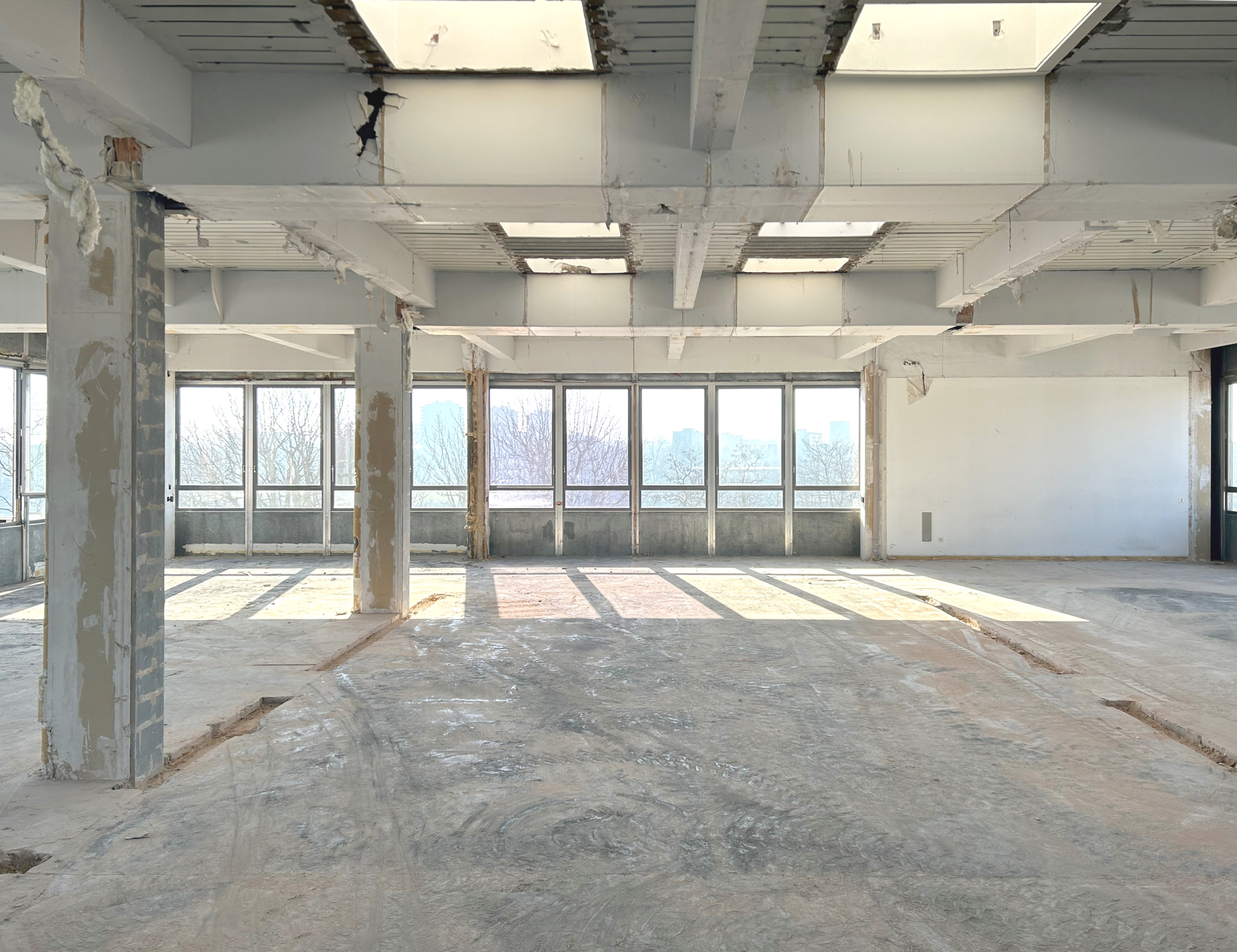 Das bestehende Gebäude besteht aus zwei Untergeschossen aus Stahlbeton und ein- bzw. dreigeschossigen Aufbauten, die als Stahlskelettbauten ausgeführt sind. Die ergänzenden Aufstockungen wurden in Holzelementbauweise ausgeführt.