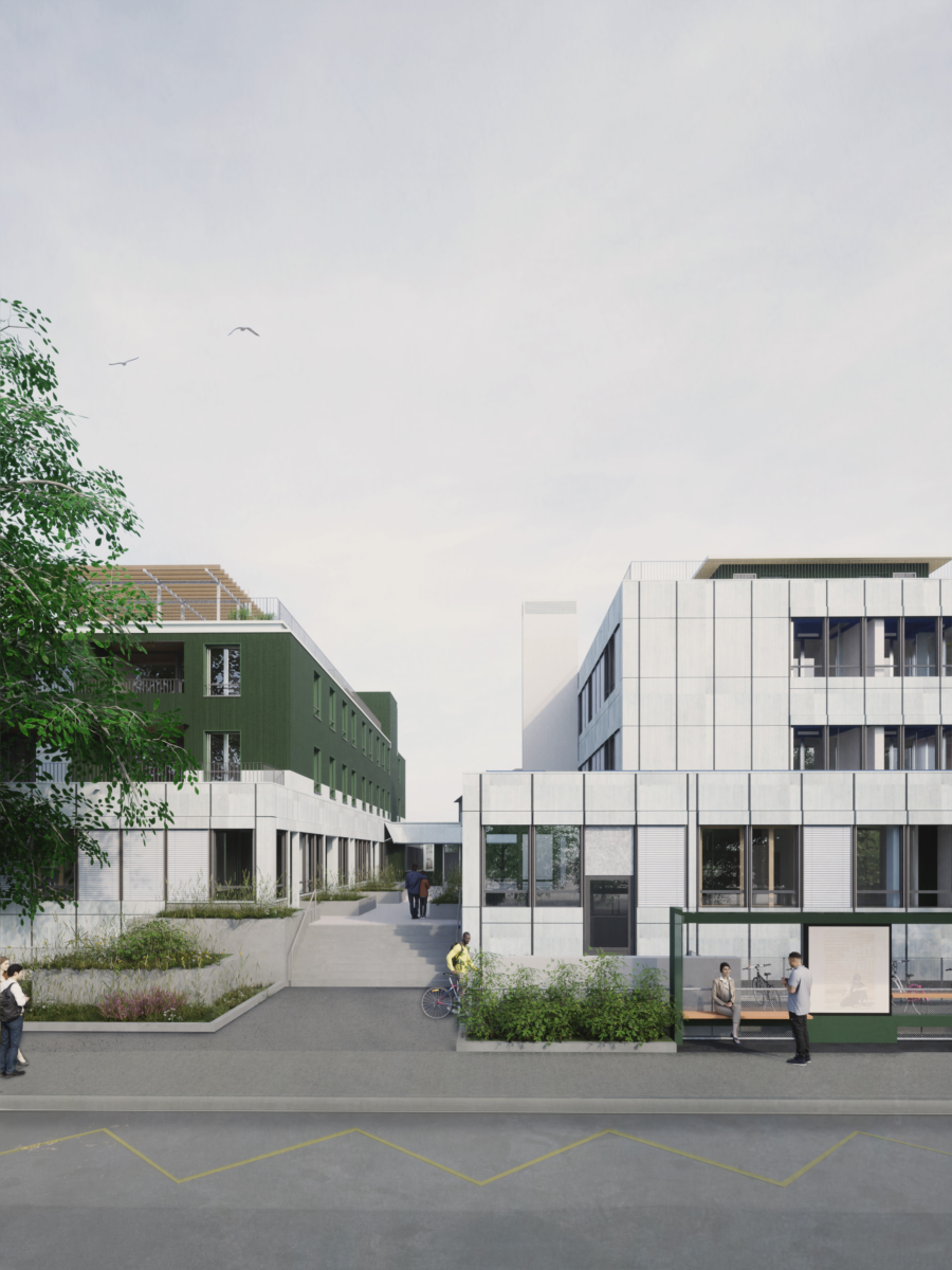 Das Gebäude an der Grenzacherstrasse 487 in Basel wurde 1969/70 durch die Hoffmann La Roche AG als Immunologisches Forschungsinstitut erstellt. Der neue Nutzungszyklus ist auf 30 Jahre angelegt. Durch den Umbau und die Aufstockung des Gebäudes werden 53 Wohnungen und Gewerbeflächen entstehen. Aus Gründen der Nachhaltigkeit soll die ganze Gebäudestruktur, die Fassade und möglichst viele Bauteile weiterverwendet werden.